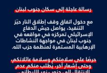 - حزب الله: أيدينا ستبقى على الزناد تحسبا لغدر العدو