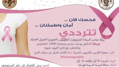 حملة للكشف المبكر عن سرطان الثدي في 13و14 ايار في قوسايا برعاية الدكتور يوسف ساسين