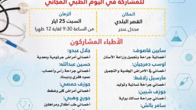 “ اهتم …حياتك أهم ” يوم طبي مجاناً في مجدل عنجر تاريخ 25 أيار 2024