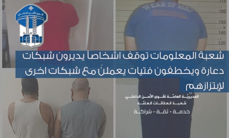 في إطار المتابعة التي تقوم بها قوى الأمن الدّاخلي لمكافحة الجرائم على جميع الأراضي اللبنانية، ولا سيّما جرائم الإتجار بالأشخاص، توافرت معطيات لدى شعبة المعلومات حول نشاط مشبوه يقوم به مجهولون في تسهيل الدعارة، يتضمّن خطف فتيات يعملن في هذا المجال وفرض خوة على من يديرهن مقابل إطلاق سراحهن، وذلك تحت التهديد بالسلاح. وقد تداولت إحدى صفحات مواقع التواصل الإجتماعي الخبر، وأرفقته بفيديو لشخص يُشهِر سلاحًا حربيًّا مهددًا من يعترض طريقه، معلنًا عزمه على خطف الفتيات أو إطلاق النار عليهن في حال عدم الرضوخ له. كما جرى تداول مقاطع فيديو أخرى بصوته يؤكد فيها تورّطه في عمليات خطف الفتيات وإطلاق نار، على خلفية قضايا مرتبطة بالمخدّرات.