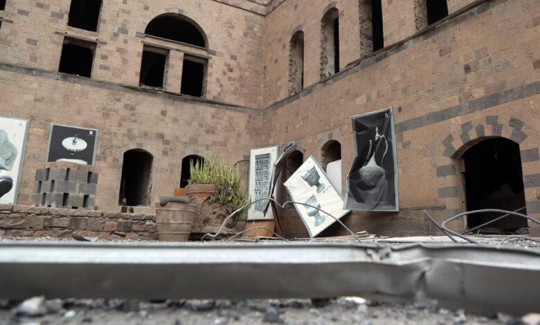لم يسلم المتحف الوطني في العاصمة اليمنية صنعاء من القصف الإسرائيلي الذي تسبب بأضرار جسيمة في بناء المتحف، ووضع أكثر من 75 ألف قطعة أثرية نادرة التي يضمها بين جنباته في “خطر شديد”.