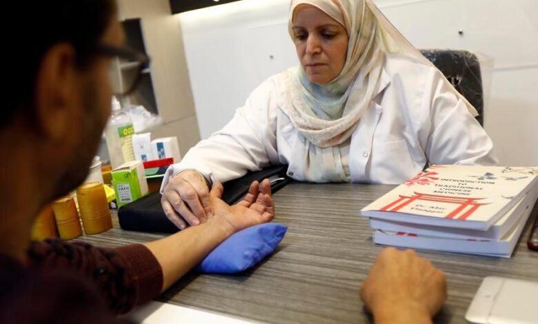 داخل عيادتها في أحد المراكز الطبية بالقاهرة، ترتب أخصائية العلاج الطبيعي والعلاج بالوخز بالإبر الصينية الدكتورة عبير النجار أدواتها من الإبر وكؤوس الحجامة بعناية وهدوء شديدين.