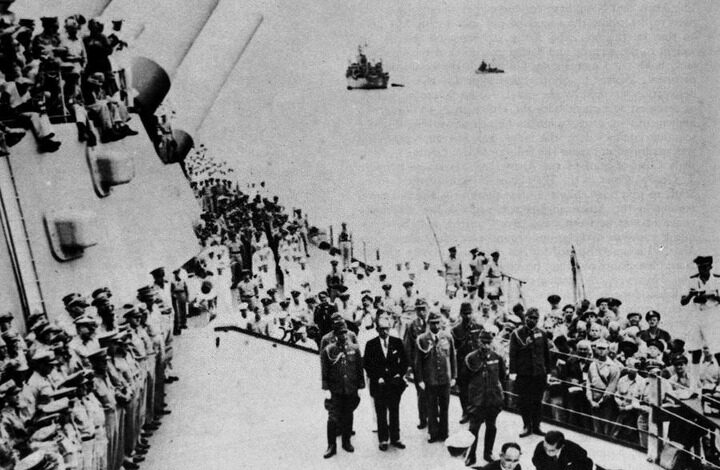 وقد أُقيمت مراسم التوقيع في نانجينغ يوم 9 سبتمبر 1945، حيث سلم ياسوغي أوكامورا، القائد الأعلى آنذاك لجيش الحملة اليابانية في الصين، صك الاستسلام الياباني الرسمي للصين. قبل سبعة أيام، على متن السفينة الحربية الأمريكية “يو إس إس ميسوري” في خليج طوكيو، كان قد وقّع بالفعل وزير الخارجية الياباني آنذاك مامورو شيجميتسو استسلام اليابان لقوات الحلفاء، ومن بينهم الصين.