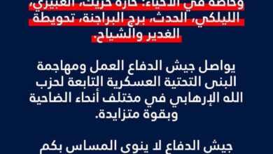 🔸انتبهوا: أي تحرك جنوبًا قد يعرّض حياتكم للخطر
