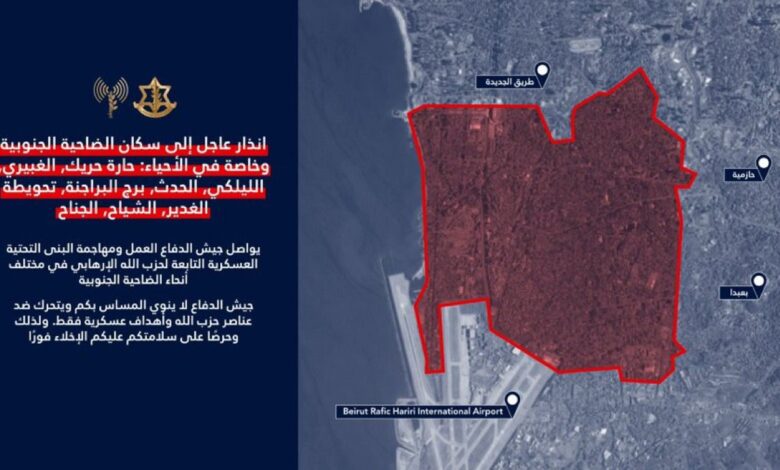 #عاجل ‼️ انذار عاجل إلى سكان الضاحية الجنوبية وخاصة في الأحياء: