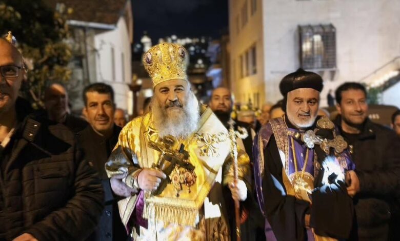 هذا وقد اشترك أبناء رعية مار جرجس للسريان الأرثوذكس وأبناء رعية مار نقولا للروم الأرثوذكس بالتطواف وزياح النعش في حي الميدان يتقدمهم نيافة المطران بولس سفر وسيادة المطران أنطونيوس الصوري مع الكهنة والشمامسة وذلك على معزوفات وتراتيل فوج الموسيقى في الكشاف السرياني اللبناني.