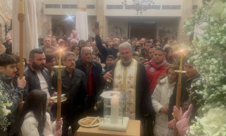 وصلت شعلة النور الإلهي يحملها الأب جورج معلوف إلى كنيسة سيدة الزلزلة العجائبية وسط حشد كبير من المؤمنين الذين أضاؤوا شموعهم من الشعلة للتبارك .